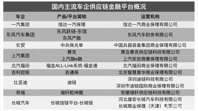 吉利、长城、比亚迪等头部车企布局供应链金融平台